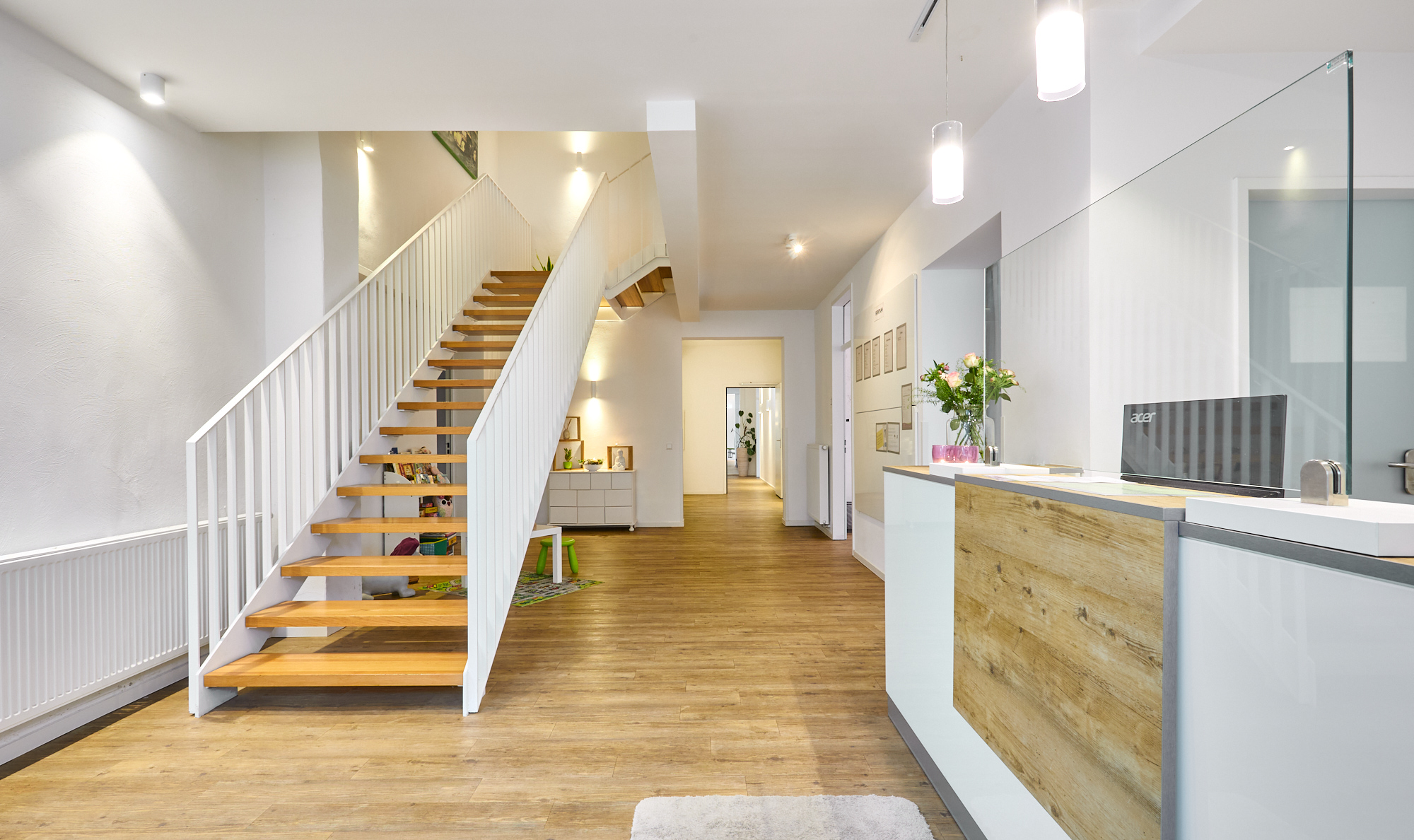 Dazu bieten wir Ihnen eine persönliche Betreuung in angenehmer Atmosphäre auf über 600 qm Praxisfläche. Unsere Praxis verfügt über 8 große, modern (individuell) eingerichtete Behandlungsräume, die selbstverständlich abgeschlossen sind, um Ihnen in der nötigen Privatsphäre eine entspannte Behandlungszeit zu ermöglichen.